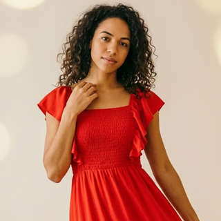 Vestido midi manga curta botões e elástico 51133