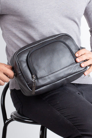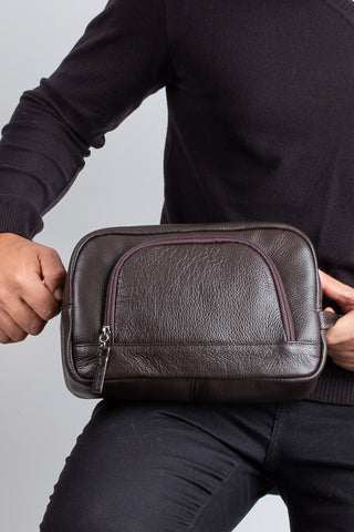 Necessaire de couro legítimo de tamanho grande, com alça lateral, dois bolso externos e um bolso interno. Possui grande espaço para guardar diversos itens. Pode ser levada em viagens ou mesmo de forma individual, na mão, com o auxílio da alça.