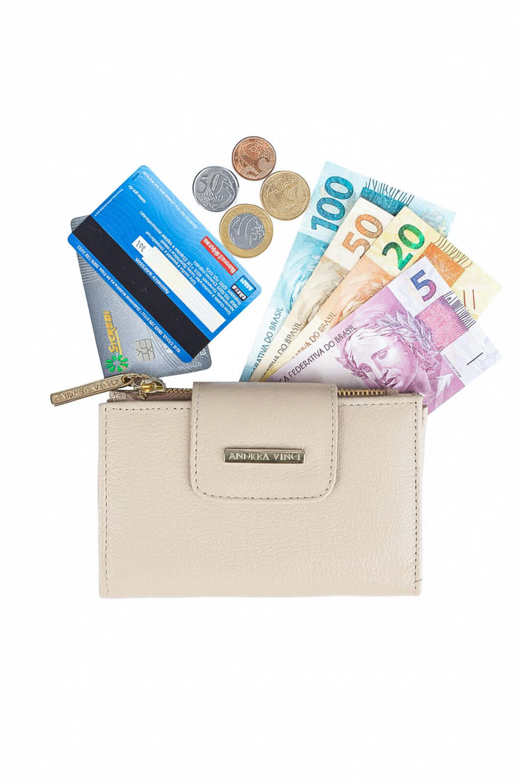 Carteira feminina de couro liso Lanna 10x15,5cm