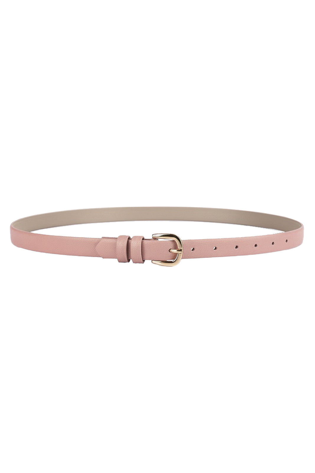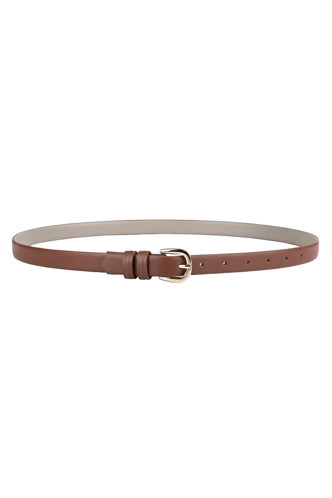 Cinto feminino fabricado em couro legítimo na parte externa, com largura fina e acabamentos discretos e básicos, o que o torna perfeito para o dia a dia. A fivela na cor dourada possui o formato arredondado. Ele pode ser usado da forma mais tradicional com calças, mas também combina muito bem com vestidos, saias e outros looks casuais.