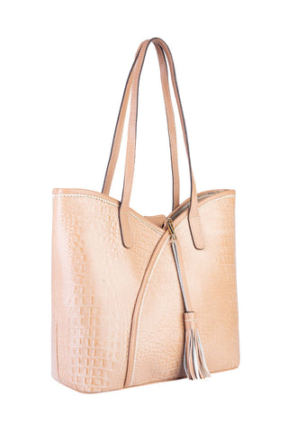 A bolsa de couro croco Rachel é o acessório perfeito para quem busca elegância e praticidade. Com seu tamanho grande e alças de ombro, ela é ideal para carregar tudo o que você precisa no dia a dia. Além disso, sua estrutura levemente rígida e corte diferenciado trazem um toque de sofisticação ao visual.