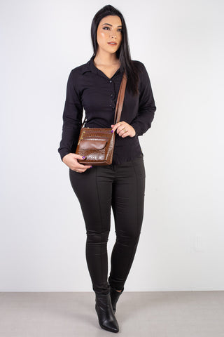 Uma das grandes vantagens desse modelo é a praticidade que oferece na organização dos seus itens. A Bolsa Transversal Maura conta com três bolsinhos externos e um bolsinho interno, permitindo que você organize seus itens pequenos de forma eficiente. Assim, seus objetos essenciais, como celular, cartões e maquiagem, ficam sempre à mão e em segurança. A versatilidade e a funcionalidade dessa bolsa fazem dela um item indispensável no seu guarda-roupa.