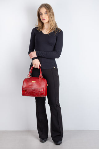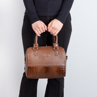 A bolsa feminina Sthefani é fabricada inteiramente em couro legítimo, e possui corpo estilo baú estruturado, que se mantém no formato, mesmo quando vazia. Possui duas alças fixas de mão, e acompanha 1 alça tiracolo para ombro. A bolsa possui a parte inferior e a tira da alça em couro texturizado. Uma peça super clássica, charmosa, versátil pelas opções de alças, e ideal para o dia a dia.
