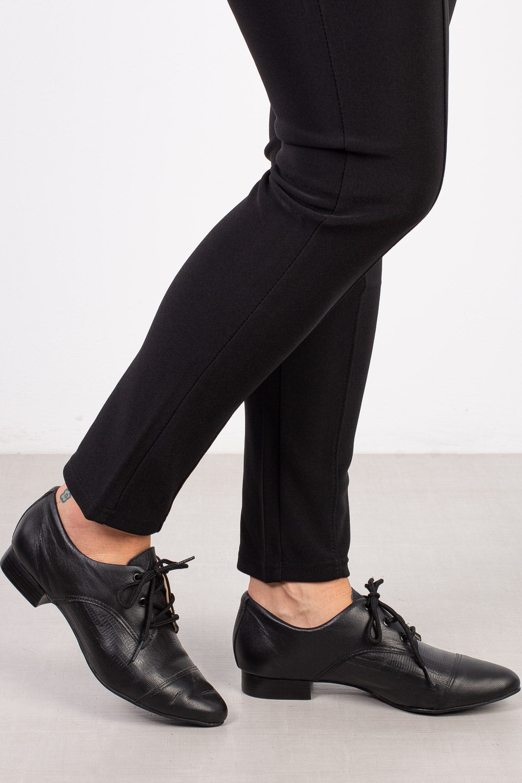Sapato feminino de couro, com salto baixo. Possui o bico fino, levemente arredondado e cadarço, que faz com que a peça se torne moderna e ao mesmo tempo elegante, combina com qualquer look, super confortável.