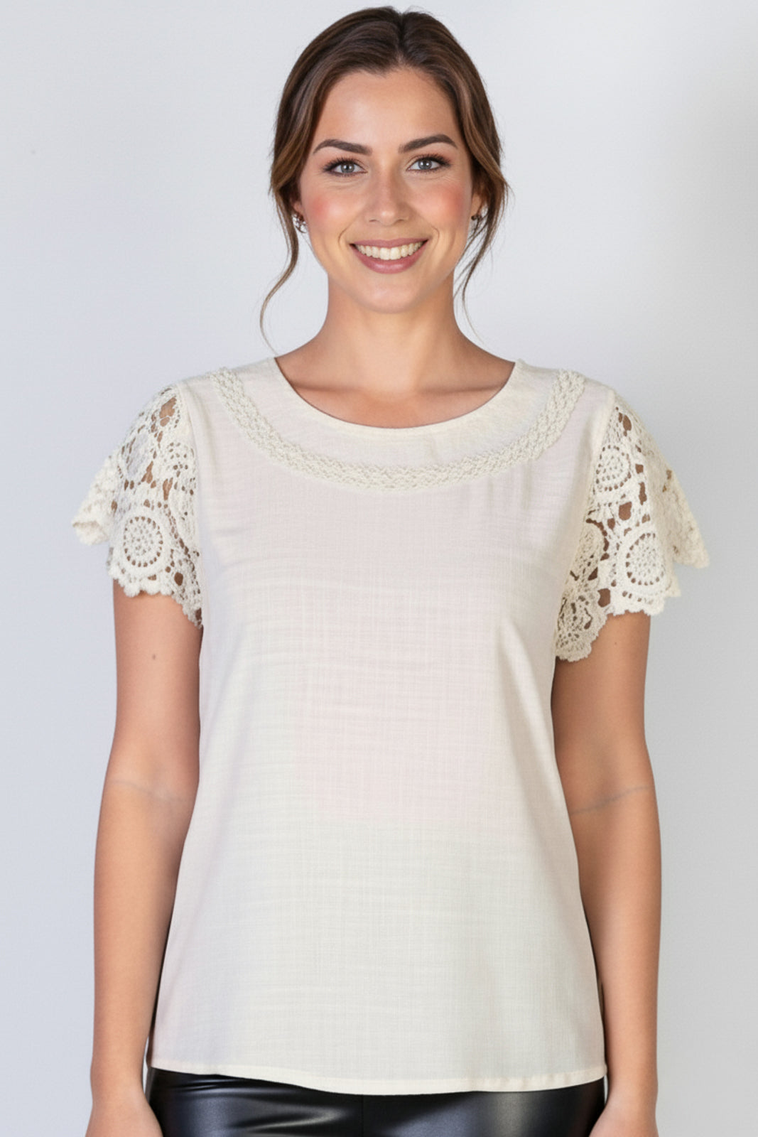 Leveza e romantismo em cada detalhe. A Blusa com detalhe em crochê é perfeita para quem busca delicadeza e elegância no dia a dia. Seu caimento soltinho traz conforto, enquanto as mangas em crochê e o acabamento no decote adicionam charme artesanal e atemporal. Uma peça versátil, fácil de combinar e cheia de estilo.