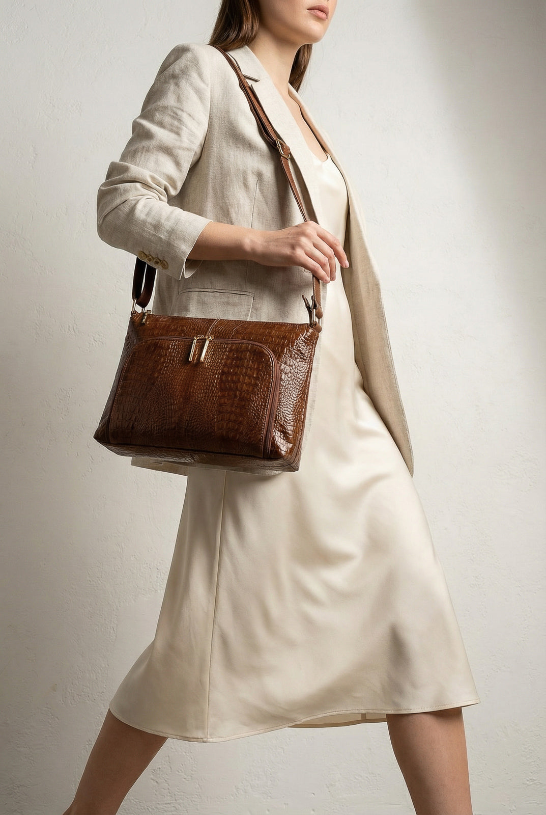 Bolsa de couro croco tiracolo Ninna