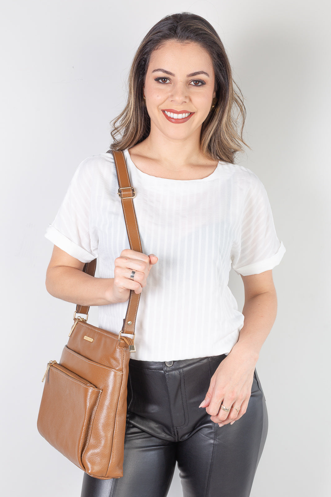 A Bolsa Transversal Giselle é daquelas peças que unem funcionalidade, praticidade e um estilo atemporal que combina com qualquer rotina. Com design slim, acabamento impecável em couro liso e organização inteligente, ela é perfeita para quem precisa de espaço sem abrir mão de leveza e elegância no dia a dia.