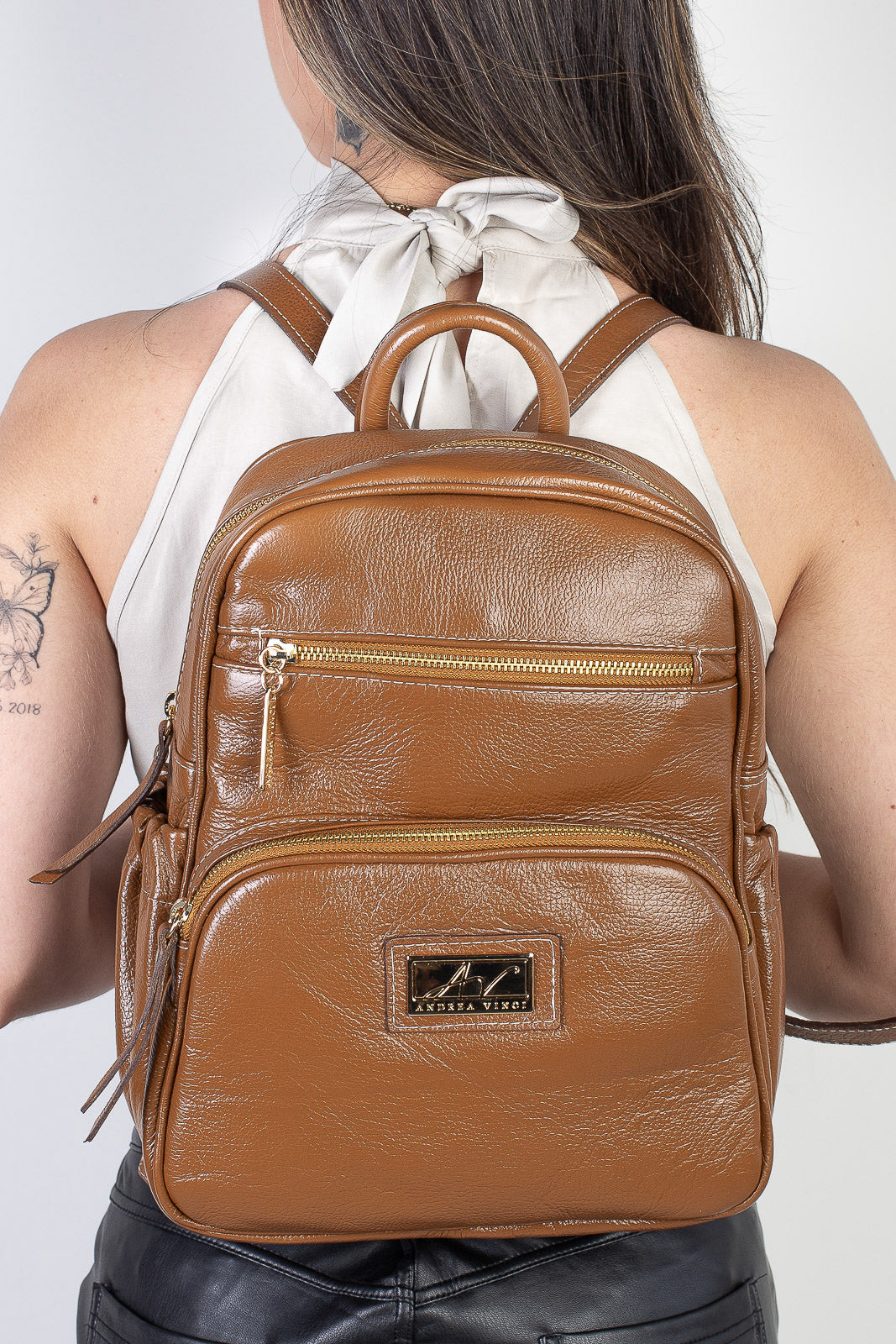 A Zoey é uma mochila fabricada em couro legítimo, de tamanho pequeno, e que poderá ser levada ao trabalho, em passeios e até viagens. A alça também é feita em couro e possui regulagem. Essa é uma mochila fácil de usar, e que combina com várias ocasiões. E apesar do tamanho, ela comporta livros, cadernos e itens pessoais. Delicada, feminina e diferente: você vai amar a liberdade de usar esta mochila!