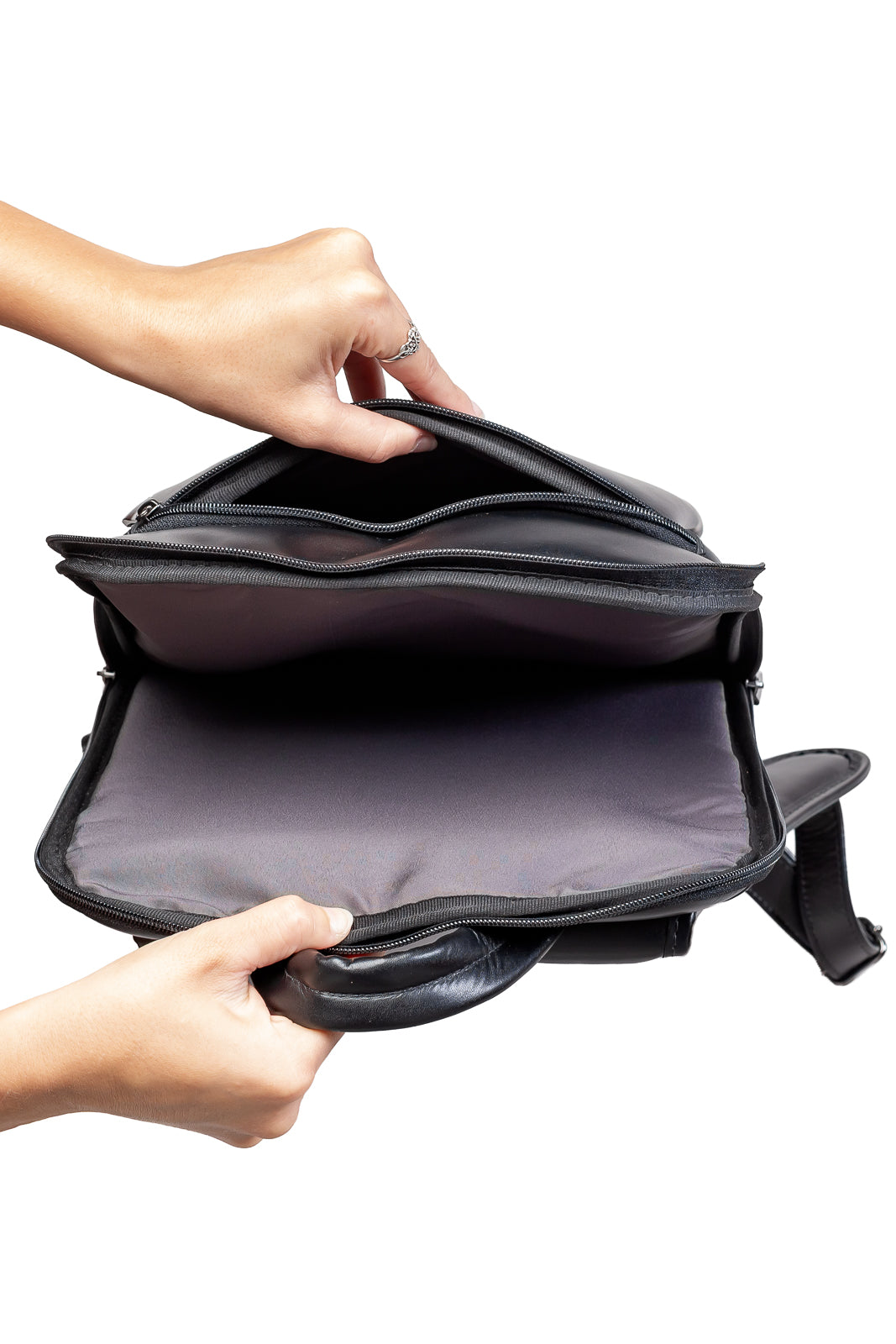Com design compacto e linhas minimalistas, ela acomoda notebook e itens essenciais de forma segura e bem distribuída, mantendo o perfil discreto e refinado. Ideal para trabalho, reuniões, deslocamentos urbanos e viagens, é uma peça que transmite profissionalismo em qualquer ocasião. Confeccionada em couro italiano de alta qualidade, oferece durabilidade superior, toque macio e acabamento impecável. Um modelo pensado para acompanhar você todos os dias, com funcionalidade inteligente e estilo atemporal.