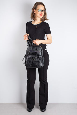 A Zoey é uma mochila fabricada em couro legítimo, de tamanho pequeno, e que poderá ser levada ao trabalho, em passeios e até viagens. A alça também é feita em couro e possui regulagem. Essa é uma mochila fácil de usar, e que combina com várias ocasiões. E apesar do tamanho, ela comporta livros, cadernos e itens pessoais. Delicada, feminina e diferente: você vai amar a liberdade de usar esta mochila!