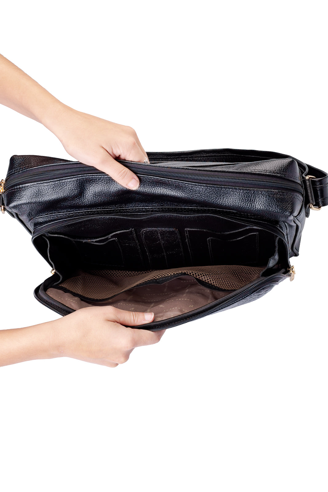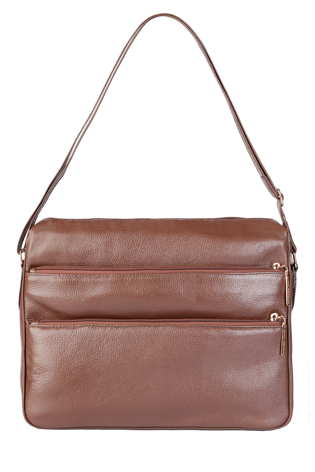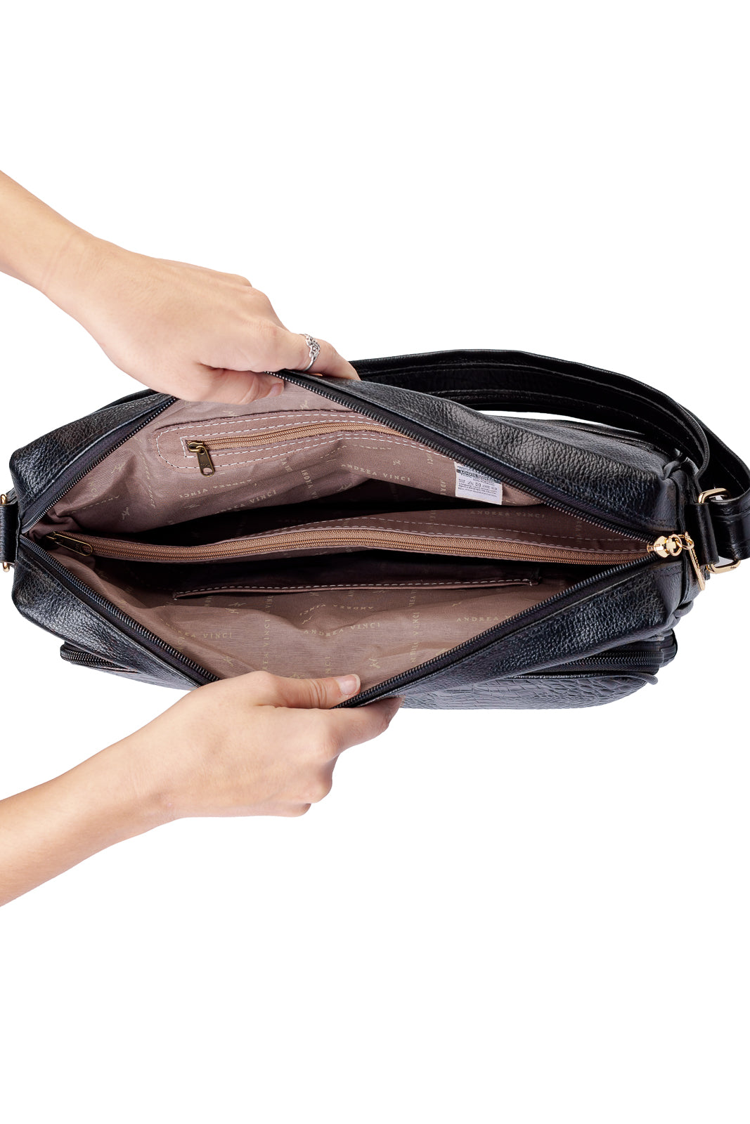 A alça possui couro duplo com costura reforçada para aguentar peso, e a pasta conta com vários compartimentos inteligentes pra deixar tudo em ordem.