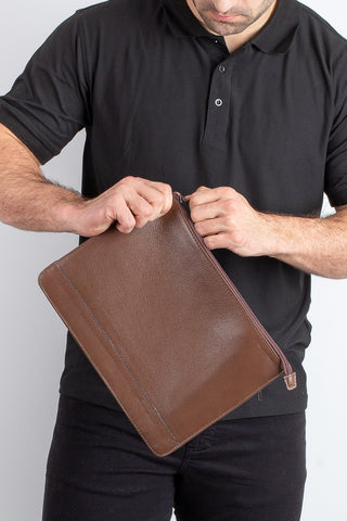 A pasta Eduardo de couro é desenvolvida para armazenar e transportar documentos de forma prática, confortável, segura e sofisticada. Ela possui zíper de fechamento, um bolso externo para objetos menores, e estrutura interna para manter o formato da pasta. Além de documentos, é do tamanho perfeito para Macbook de 13 polegadas.