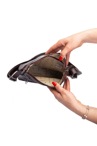 A bolsa transversal Maura é de tamanho pequeno, e possui uma alça para ombro ou tiracolo, com regulagem de tamanho. Ela é fabricada totalmente em couro legítimo com costuras e acabamentos de qualidade, para que você possa usar todos os dias. Esse modelo possui três bolsinhos externos e um bolsinho interno para organizar itens pequenos. Leve apenas o essencial com essa bolsinha que será a sua melhor amiga em várias ocasiões.