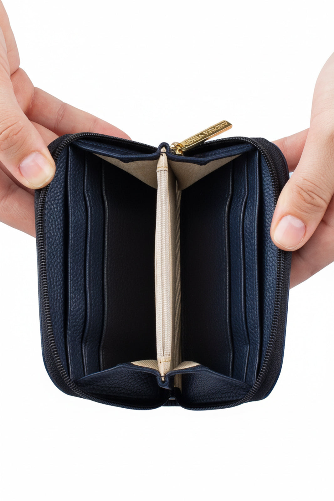 A carteira Kiara é fabricada em couro legítimo e é de tamanho pequeno - praticamente mini. Mede 10cm de altura, 13,5cm de largura e 2cm de profundidade. Possui espaço para CNH, moedas e dinheiro dobrado, além de um zíper para fechamento total. Por seu tamanho pequeno, é uma carteira prática e versátil, para levar somente o essencial, e que cabe em qualquer bolsa.
