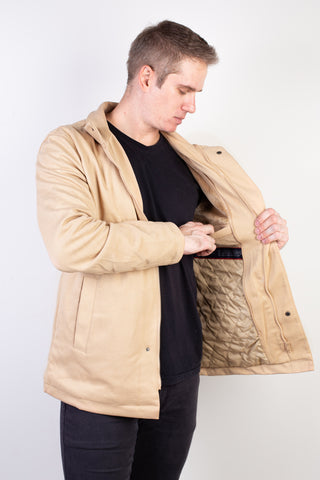 Casaco masculino Kloze de lã sintética, com gola e zíper removíveis, fecha também com botão, bolsos interno e externo. Elegância e conforto pela Enluaze.