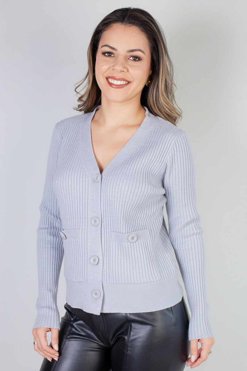 Esse casaco tricot da Fluffy é aquele tipo de peça que transforma o básico em algo especial. Seu caimento é ajustado na medida certa, com um toque macio e quentinho que envolve como um abraço. Os botões frontais e os dois bolsos com aplicação decorativa trazem um charme extra à peça, enquanto a trama canelada valoriza a silhueta com elegância.