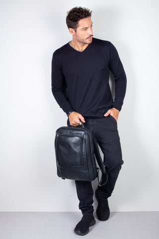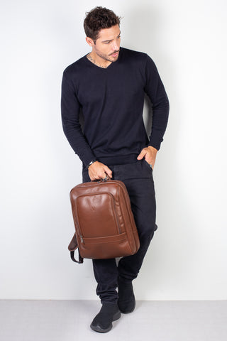 O design fino da Mochila Slim Enzo é complementado por sua construção robusta em couro genuíno. Seu acabamento impecável não apenas eleva seu visual, mas também garante durabilidade excepcional. Além disso, a traseira acolchoada proporciona conforto durante todo o dia, mesmo em deslocamentos longos. Seu bolso interno oferece segurança extra para seu notebook, protegendo-o contra impactos indesejados.