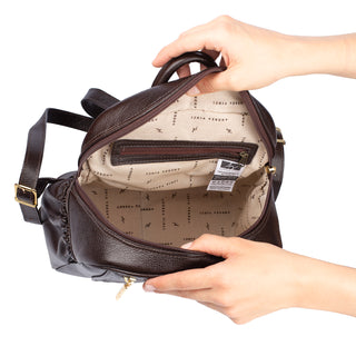 A Estela é uma mochila de tamanho médio, fabricada inteiramente em couro legítimo, com textura na parte frontal. Seu tamanho é perfeito para carregar os itens essenciais no dia a dia, além de ser uma ótima opção para os passeios. Essa mochila possui vários bolsinhos que auxiliam na organização, incluindo dois porta garrafas laterais. Uma peça confortável, prática e com qualidade que você procura.