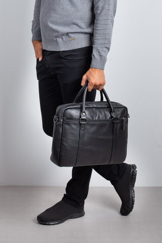 A pasta masculina executiva Scott é uma excelente opção para quem precisa transportar seu notebook ou outros itens pessoais com praticidade e segurança. Para usá-la, basta escolher a forma mais confortável de carregá-la: pelas alças fixas para mão, ou pela alça removível e regulável para tiracolo. A pasta possui uma divisória interna que comporta notebook de até 14 polegadas, garantindo a proteção do equipamento durante o transporte. Caso precise carregar um notebook de tamanho maior, de até 15.6 polegadas, é possível acomodá-lo solto dentro da pasta. Possui alça traseira para acoplar em mala de viajem.