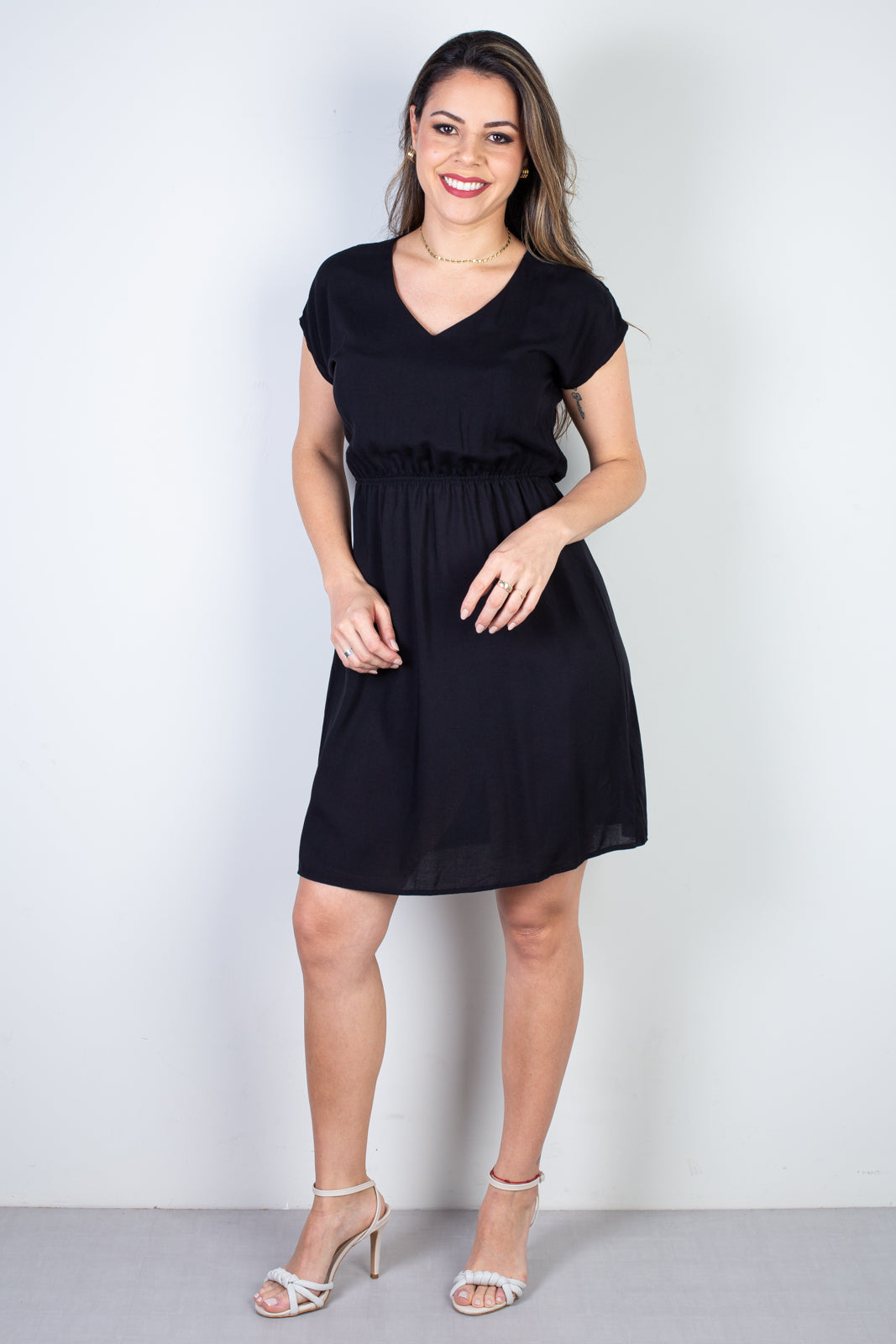 Versátil e atemporal, o vestido curto de viscose 51156 pode ser combinado com rasteirinhas, tênis ou sandálias de salto — um item essencial para quem busca um visual feminino, leve e confortável.