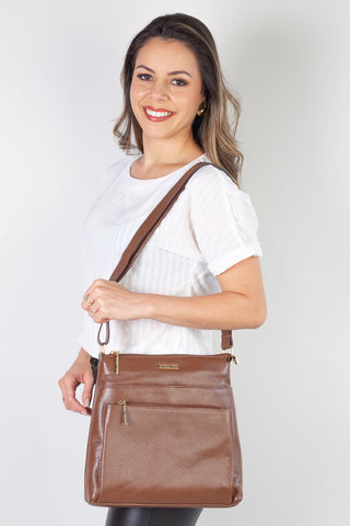 Mini mochila transversal de couro Jeff