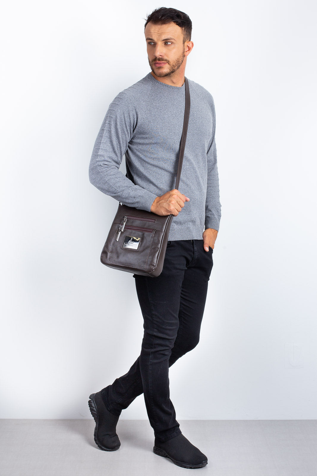 Esta bolsa tiracolo foi desenvolvida especialmente para os homens que procuram uma bolsa menor para levar somente o que é essencial na rotina diária. Este modelo é fabricado inteiramente em couro legítimo, com metais na cor níquel e acabamentos de alta qualidade.