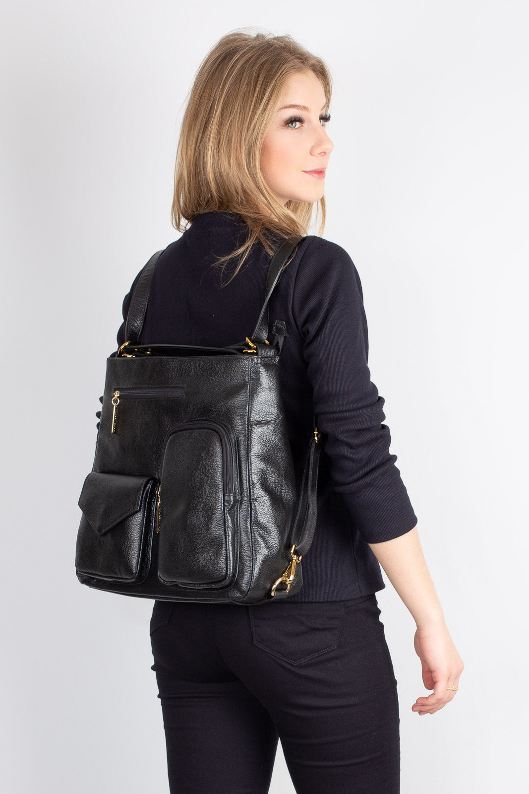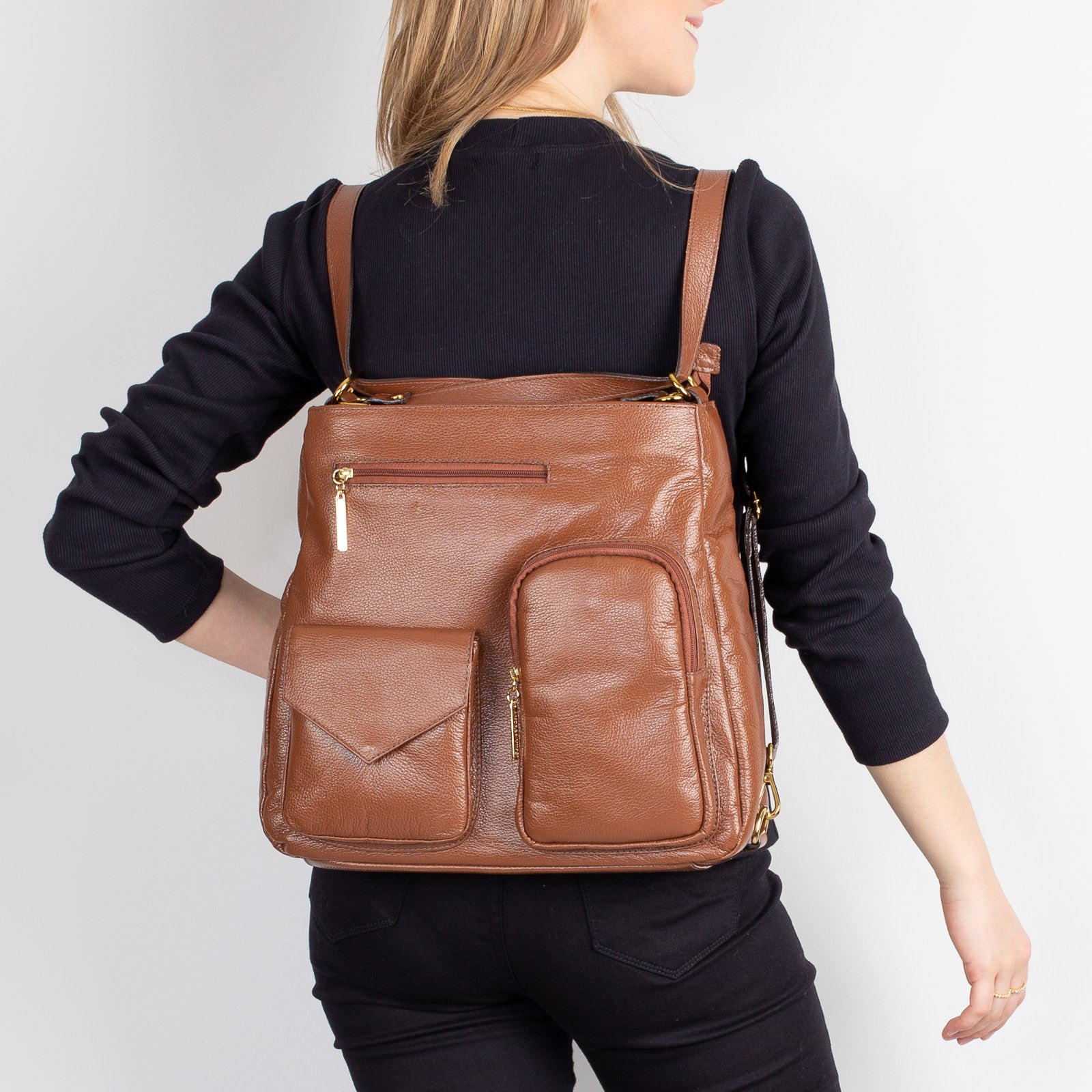 A bolsa mochila Érica é fabricada em couro legítimo, com toque macio e estrutura maleável. A alça possui regulagem de tamanho, e pode ser usada tanto no ombro quando nas costas, como mochila. Ela possui três bolsinhos externos e outros três bolsos internos, ideais para organização de pequenos objetos. Versátil, prática, confortável e espaçosa. Essa bolsa mochila é tudo o que você precisa no dia a dia.