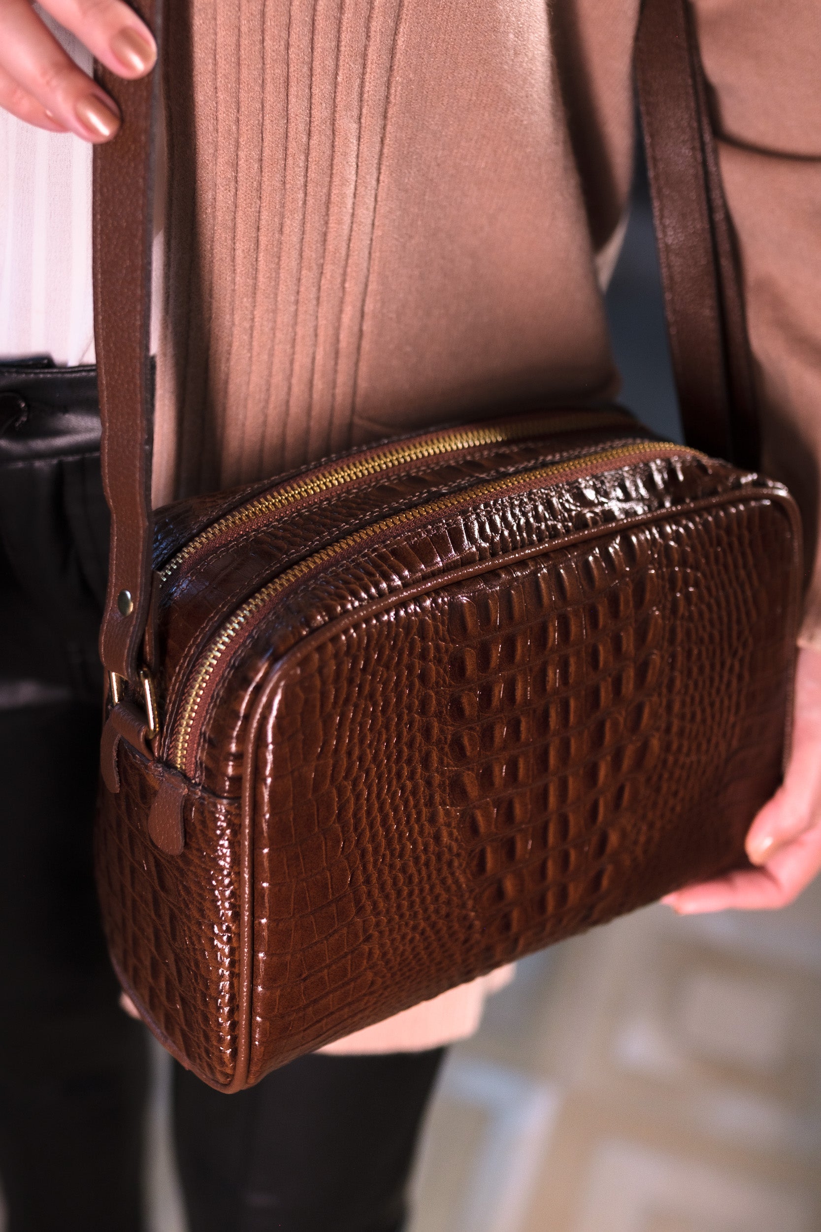 A bolsa Daiana é fabricada em couro legítimo e possui formato retangular e estruturado. O modelo conta com dois compartimentos superiores em zíper, além de três bolsinhos internos. A alça possui regulagem de tamanho, sendo possível usar tanto no ombro quanto na transversal. Clean, básica, fácil de usar: a sua melhor companheira para qualquer hora, do dia ou da noite.