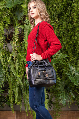 Com sua estrutura em couro liso e detalhes em couro croco, a bolsa saco Natasha combina elegância e sofisticação. Além disso, possui um prático bolso frontal, ideal para armazenar itens que precisam estar sempre ao alcance das mãos.