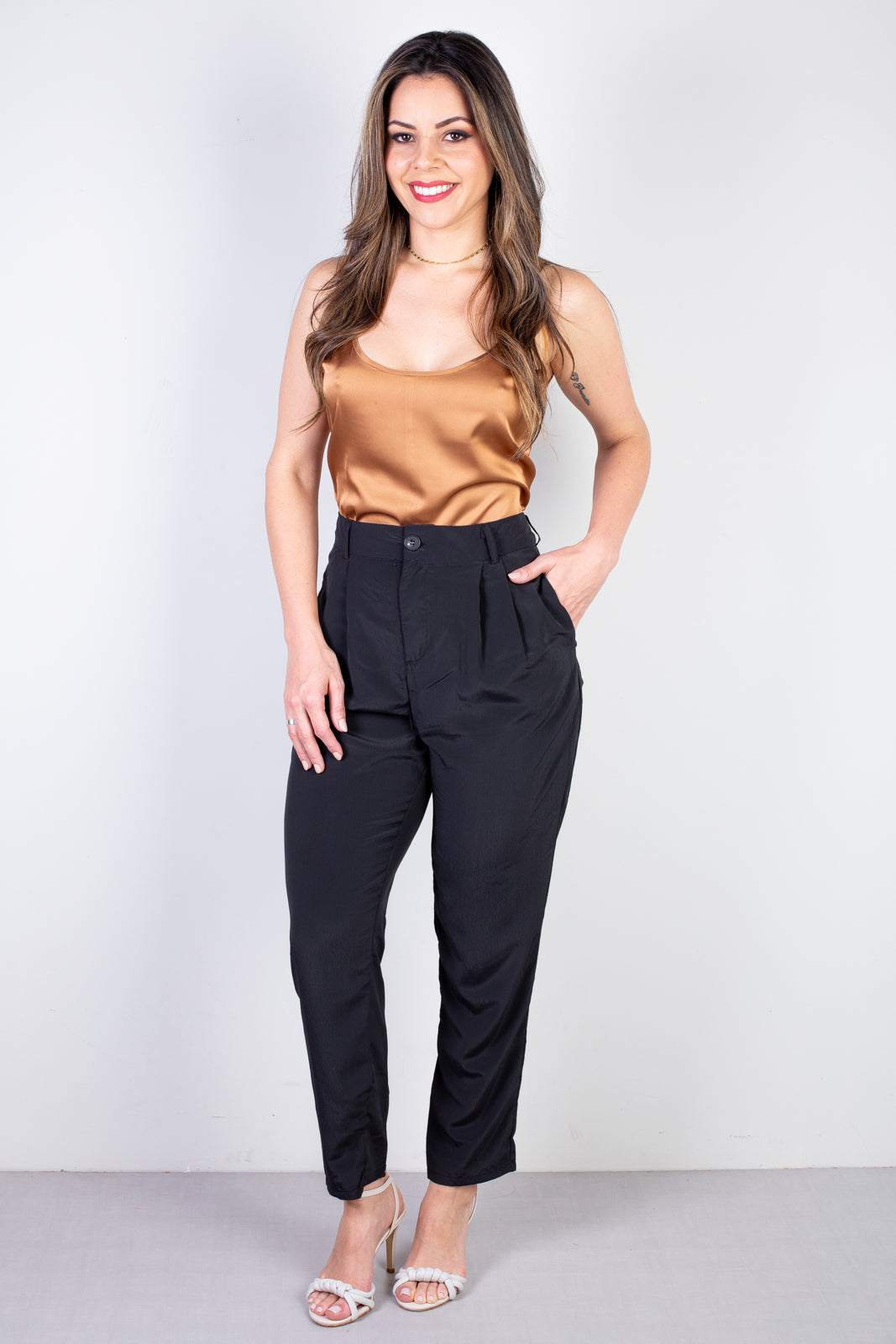 A Calça Reta Feminina Alfaiataria 51178 é a escolha perfeita para quem busca elegância e conforto no dia a dia. Com modelagem reta levemente ajustada, pregas frontais sutis e cintura alta com passantes, ela entrega um visual refinado e moderno. O tecido leve e fluido garante caimento impecável e toque macio, ideal para compor produções versáteis que transitam do trabalho a momentos de lazer.