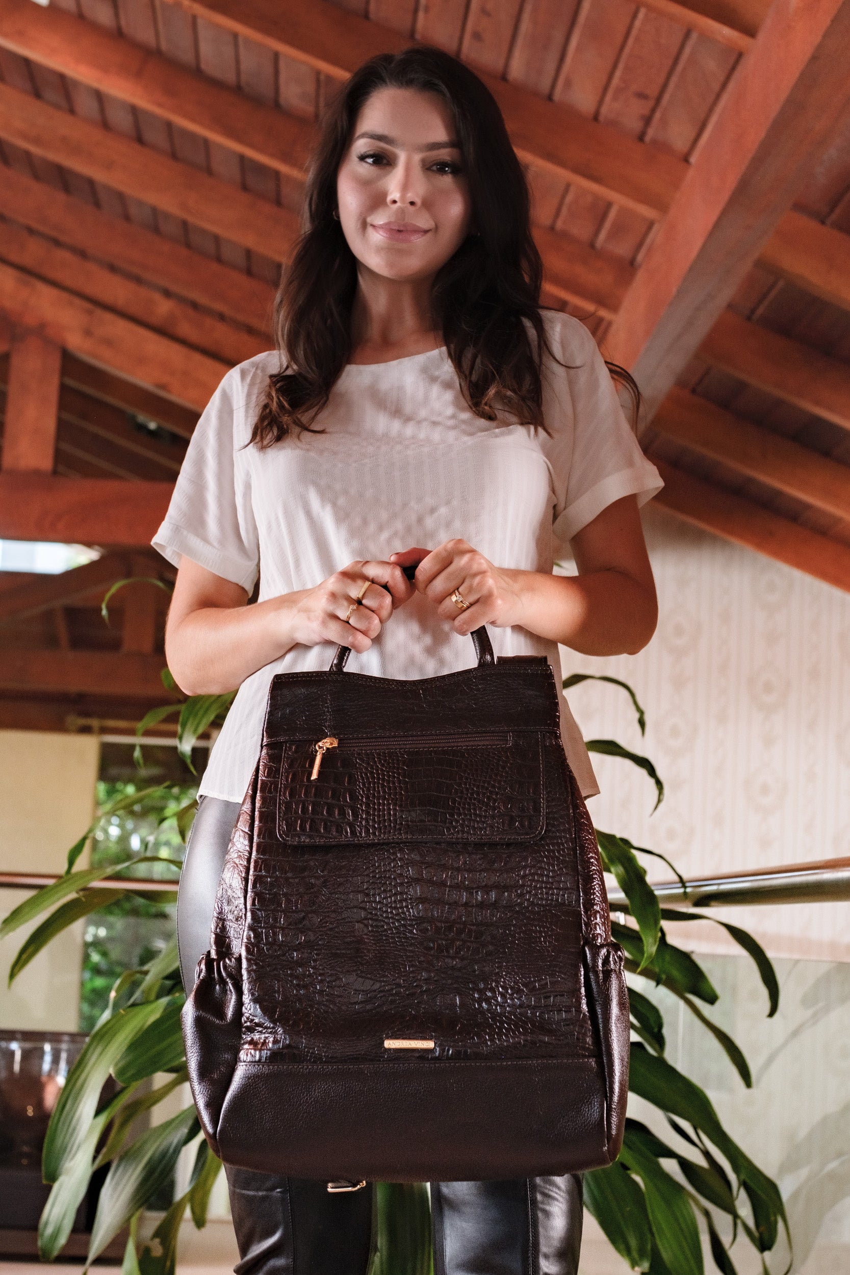 A Mochila Suelen é a escolha perfeita para quem busca estilo, praticidade e proteção em um único acessório. Com design antifurto e acabamento em couro legítimo com textura croco, ela foi feita para acompanhar seu dia a dia com sofisticação e confiança.