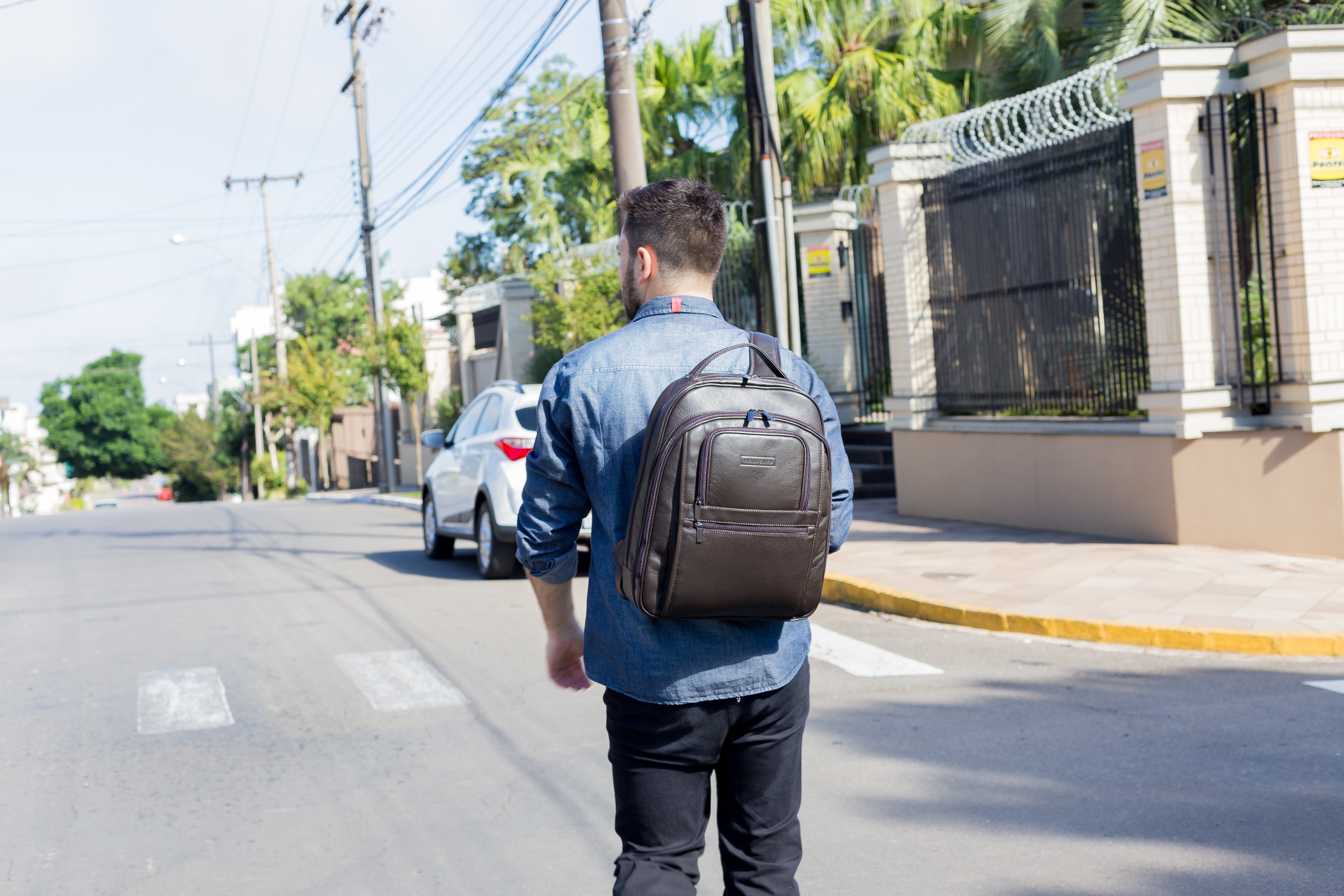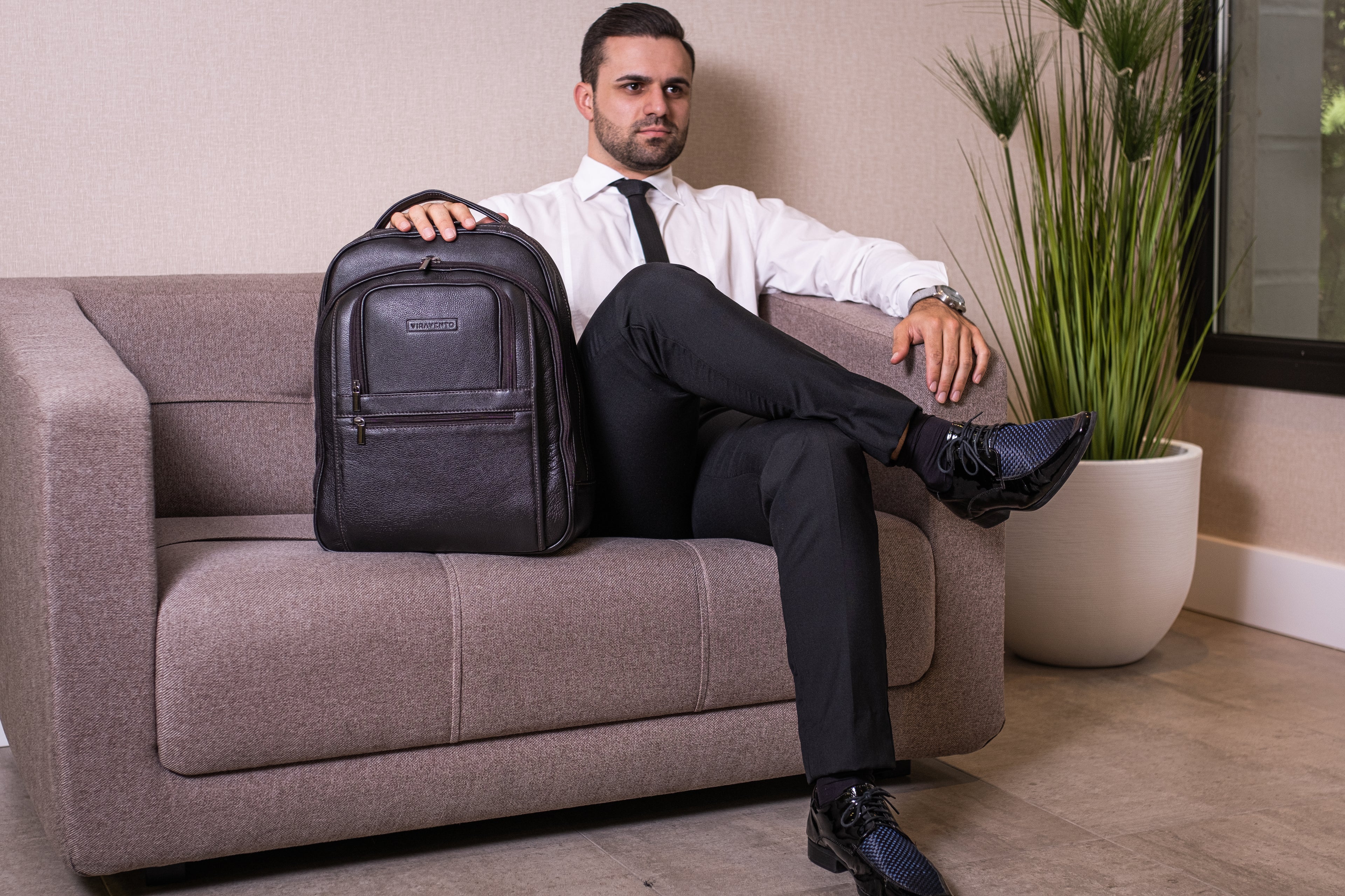 A mochila Office é fabricada inteiramente em couro legítimo e possui costuras e acabamentos de alta qualidade. Seu formato é compacto, mas o interior é muito espaçoso. Além de duas grandes repartições, a Office possui divisória para proteger notebook, e vários bolsinhos para canetas, cartões e celular. Possui também uma alça na parte traseira para acoplar na mala de viagem. O que torna o transporte muito mais seguro e prático.