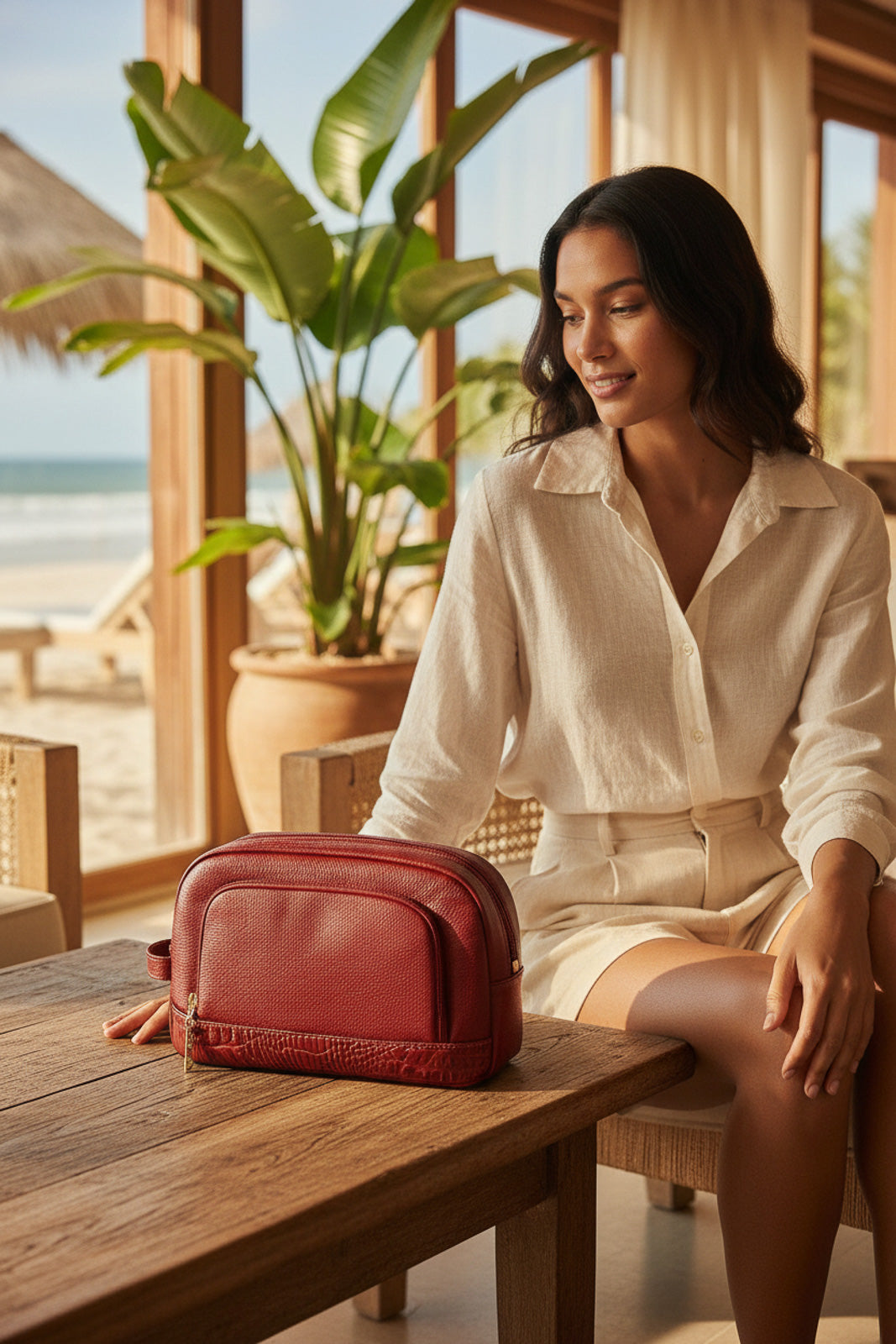 A necessaire de couro liso Manuela é a escolha ideal para quem busca organização, praticidade e sofisticação em um único acessório. Com tamanho grande e design estruturado, ela oferece espaço amplo para acomodar itens de higiene, maquiagem e cuidados pessoais com total praticidade.