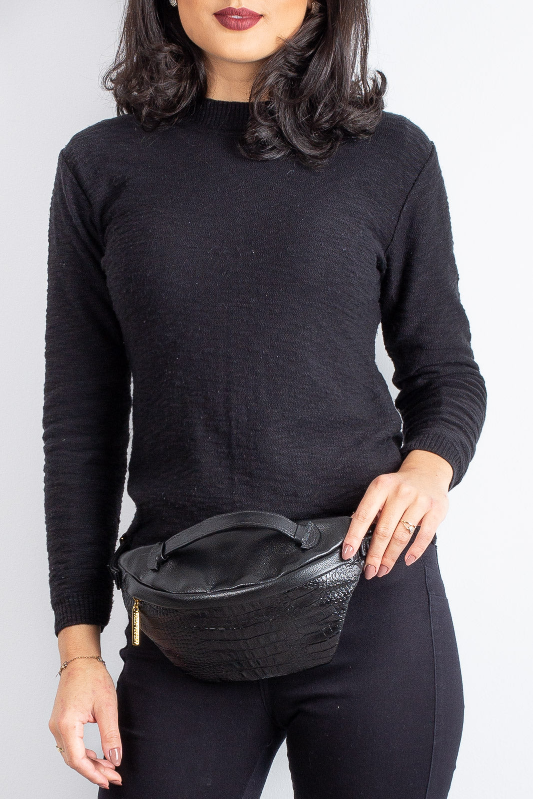 Com alcinha curta para a mão e cinta ajustável, essa pochete pode ser usada de diversas formas, seja na transversal ou na cintura. Além disso, ela possui um bolsinho interno com fecho em zíper, que permite guardar objetos pequenos com segurança, e um bolso frontal externo, que facilita o acesso a itens que precisam ser usados com mais frequência.