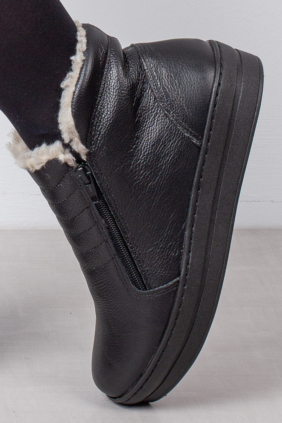 Tênis de cano alto, fabricado em couro legítimo na parte externa e totalmente forrado com pelo na parte interna. Possui dois zíperes e matelassê na parte frontal do couro. Uma opção de calçado super quentinho, confortável e charmoso para usar no dia a dia. Você vai amar esse estilo.