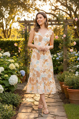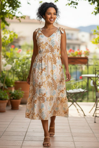 O vestido midi perfeito para quem busca leveza, movimento e um visual naturalmente elegante. Com decote em V na frente e nas costas, detalhe ajustável nos ombros e shape soltinho, ele valoriza a silhueta com conforto absoluto. Um modelo versátil para acompanhar você em qualquer ocasião do dia.