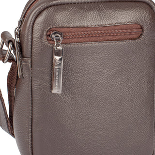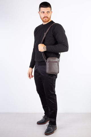 A bolsa Pietro é de formato retangular e tamanho pequeno, fabricada inteiramente em couro legítimo. Possui dois bolsos externos, e não há bolsos internos. A alça transversal é fabricada em fita com reforço em couro, proporcionando a este modelo um estilo informal, básico e pronto para o seu dia a dia.